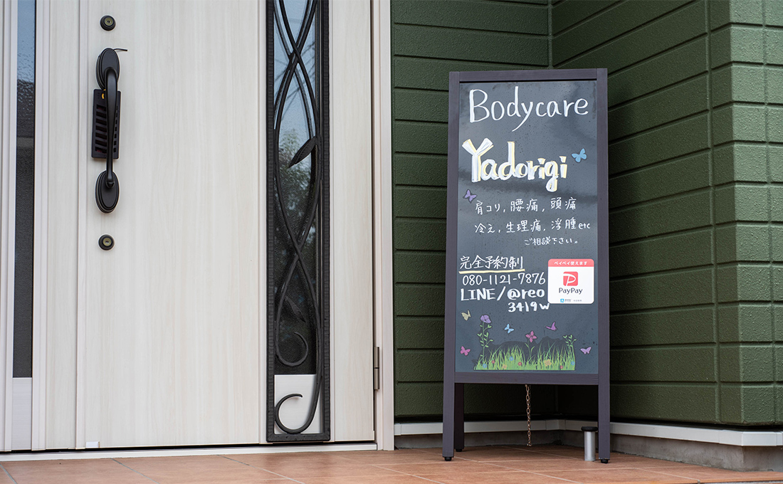 多賀城市や名取市周辺からも通いやすい仙台市若林区の住宅街に佇むサロン・Yadorigi。自宅の一室をサロンとして使用しているため、完全プライベート空間で施術を受けられます。人目を気にすることもないので、普段着やノーメイクでお越しいただいても大丈夫です。人にはなかなか言えないお悩みも全部吐き出してみてください。